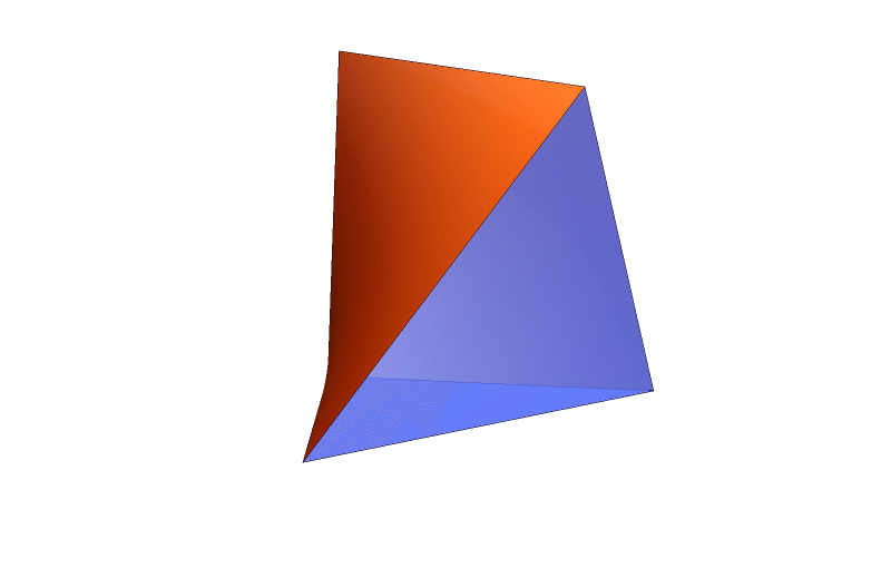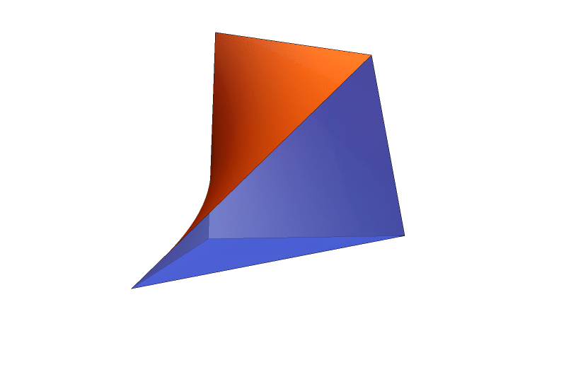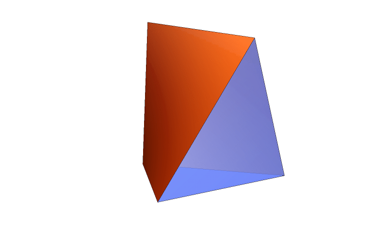 I made some progress on calculating volume of an antiprism whose base is a regular \(n\)-gon and with a given height. For that I use the fact that such an antiprism can be split in \(2n\) congruent pieces. Then I just calculate the volume of one piece. It is like advising a birthday party how to cat a cake in the shape of an antiprism.