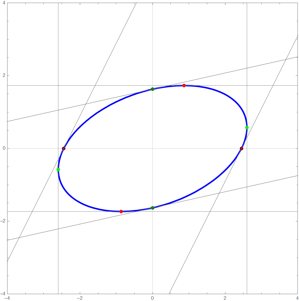 Thus, we must have \[ 2 x^2 + 6 = 3 x y. \] Since we want our point \(P = (x,y)\) to be on the line segment \(\overline{AB}\) we must have \[ y = - \frac{4}{3} x + 5 \quad \text{with} \quad 0 \leq x \leq 3. \] Substituting the formula for \(y\) in \(2 x^2 + 6 = 3 x y\) we get \[ 2 x^2 + 6 = 3 x y = - 4 x^2 + 15 x. \] This is a quadratic equation \[ 2 x^2 -5 x + 2 = 0, \] whose solutions are \[ x = \frac{1}{2} \quad \text{and} \quad x = 2. \]