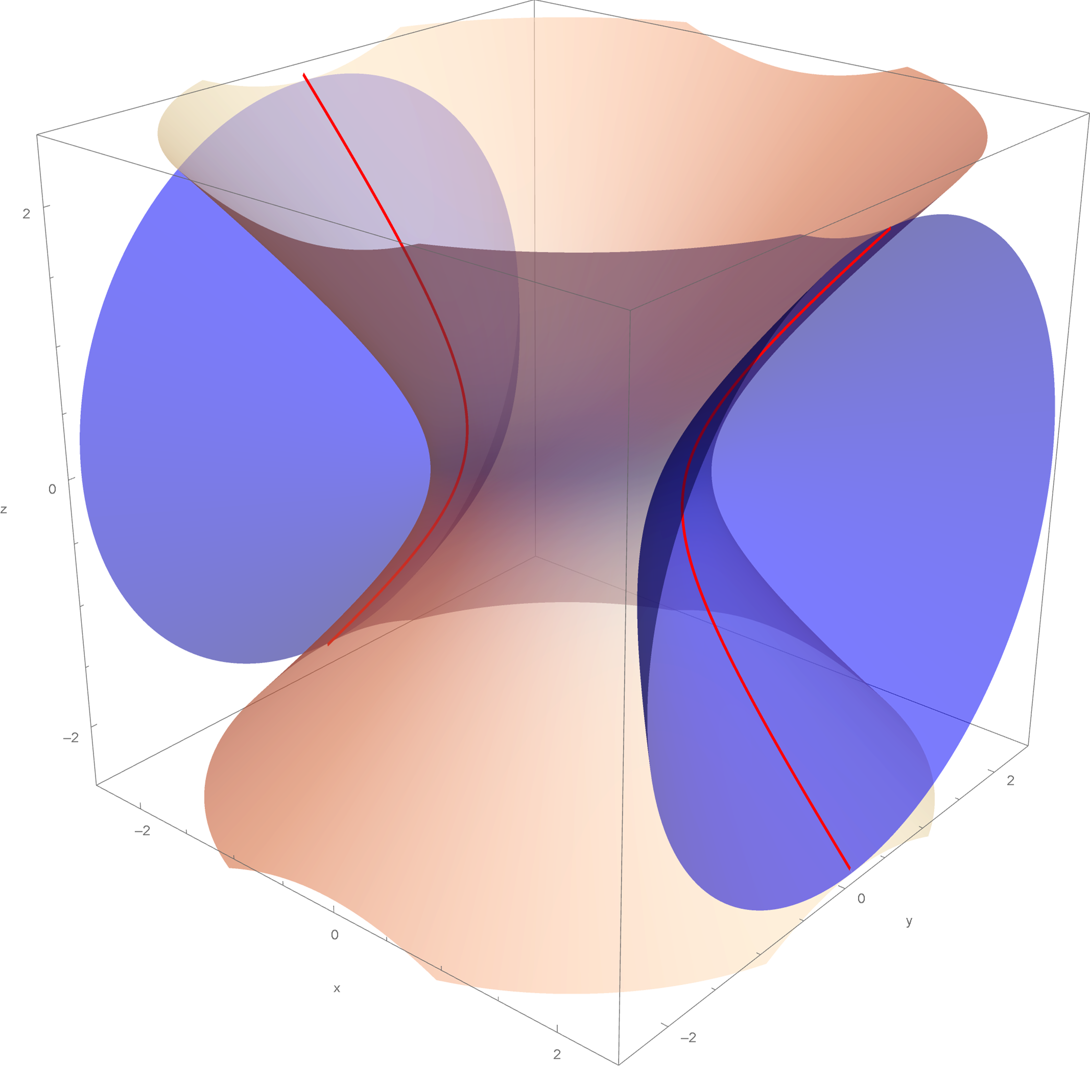 x^2 + y^2 - z^2 = 1, \qquad -x^2 + y^2 + z^2 = 1.