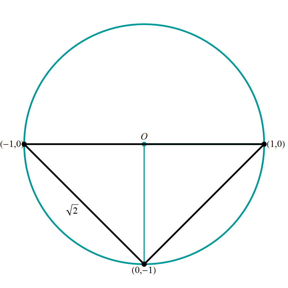 Going back to the meaning of the angles \(\alpha\) and \(\beta\) we see that \[ \alpha = \frac{2\pi}{3}, \quad \beta = \frac{2\pi}{3}. \] give the equilateral triangle. Thus, the triangle with the maximum perimeter inscribed in the unit circle is the equilateral triangle.